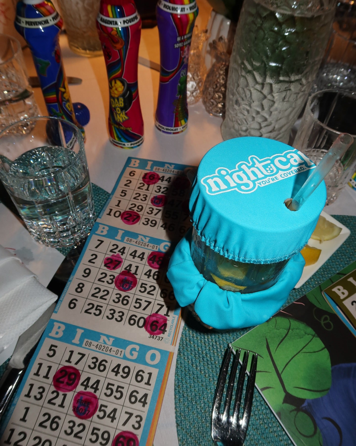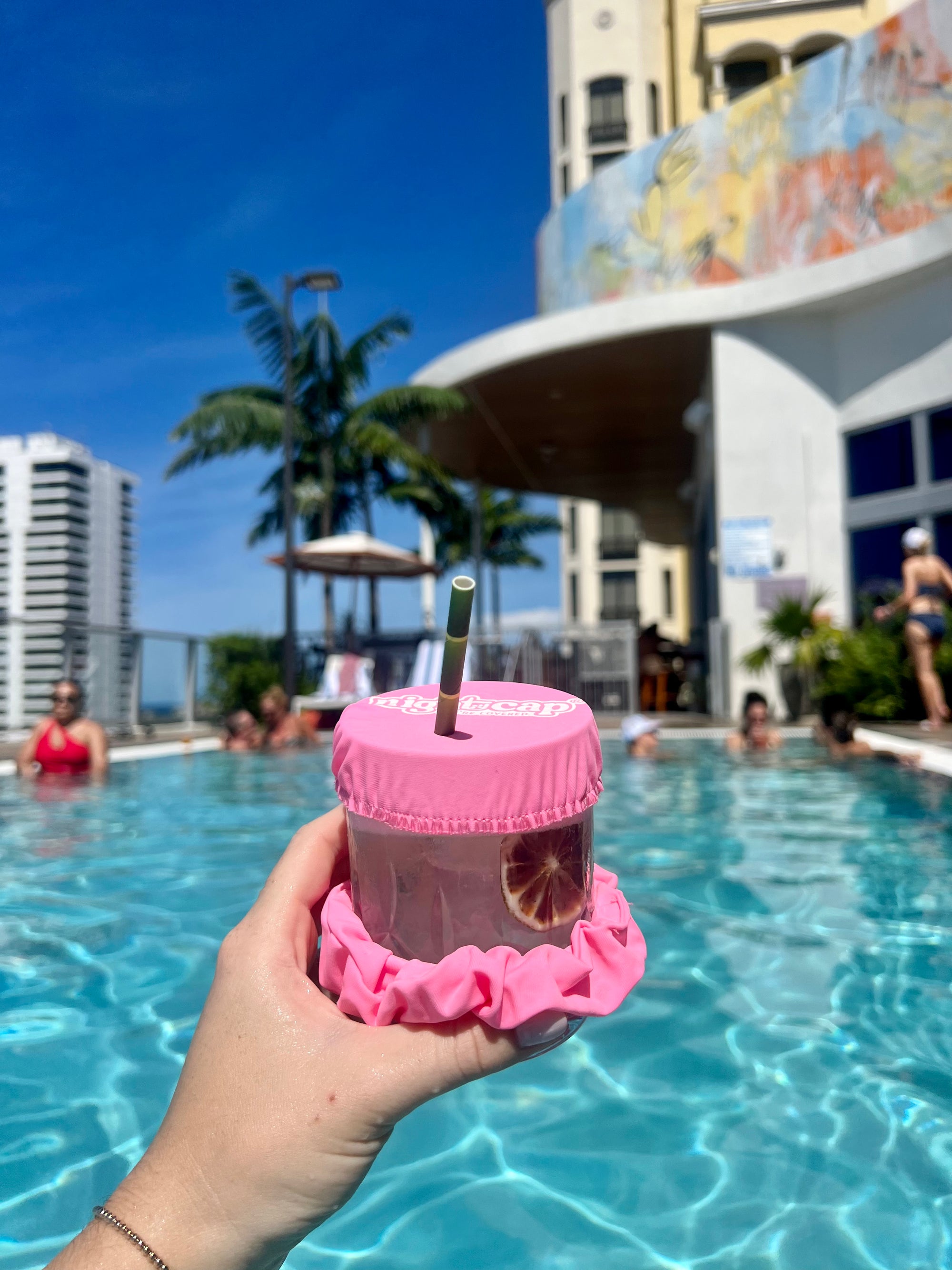Nightcap is a patented drink spiking prevention scrunchie - it covers cups and glasses to prevent pills and powders from being dropped into a drink.